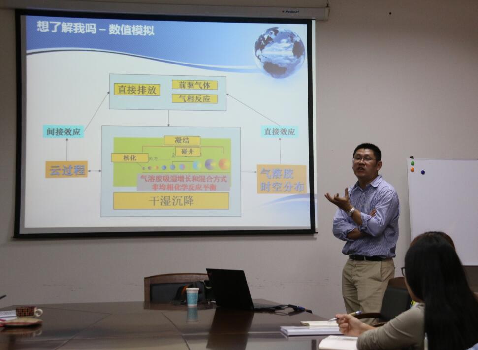 车慧正研究员简单介绍了大气气溶胶概况、中国气溶胶光学-辐射特性等基本情况,并和大家探讨了他在中国气溶胶光学-辐射特性地基观测网络发展、中国地区气溶胶光学特性分布和变化及其直接辐射效应估算、地面太阳辐射和能见度近几十年来说长期变化等方面取得的科研成果。随后,车慧正研究员和在座师生分享自己科研的经历,深入思考如何做一名优秀的科研工作者,如何在面对困境的时候扎实做事,进一步和师生们分享关于高水平学术论文发表方面的经验。