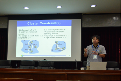 中武老师简单回顾了为学生授课时已详细介绍的各类自动布局布线算法。在此基础上,中武老师总结了近年来国际上CAD重要会议及竞赛的发展趋势,从数据上来看,近年来中国在这一领域取得了繁多的成果。在此后的详细介绍中,中武老师重点介绍了关于模拟电路自动布局布线的相关成果,其中包括其代表性研究成果Sequence Pair算法,并现场演示了通过benchmark实现模拟自动布局算法的软件。