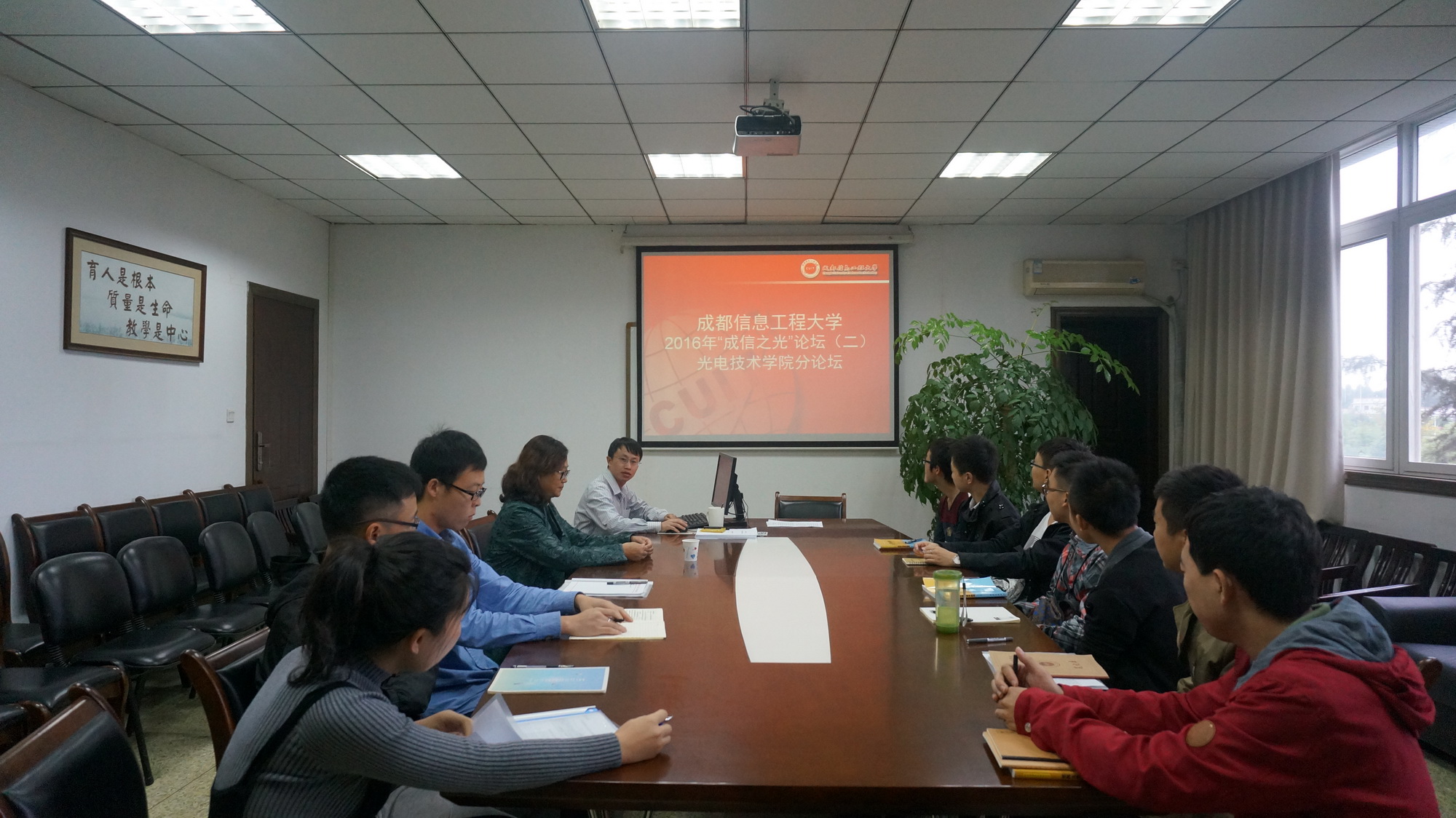 【本网讯】10月11日,由云博体育学生处主办、光电技术学院承办的2016年“成信之光”论坛(二)之光电技术学院专场在信息楼312会议室成功举办。光电技术学院副院长杨定宇教授,辅导员黄川蓉老师,光电技术学院办公室李红梅老师出席了本次论坛,光电技术学院全体在校研究生参加了此次论坛。论坛由黄川蓉主持。