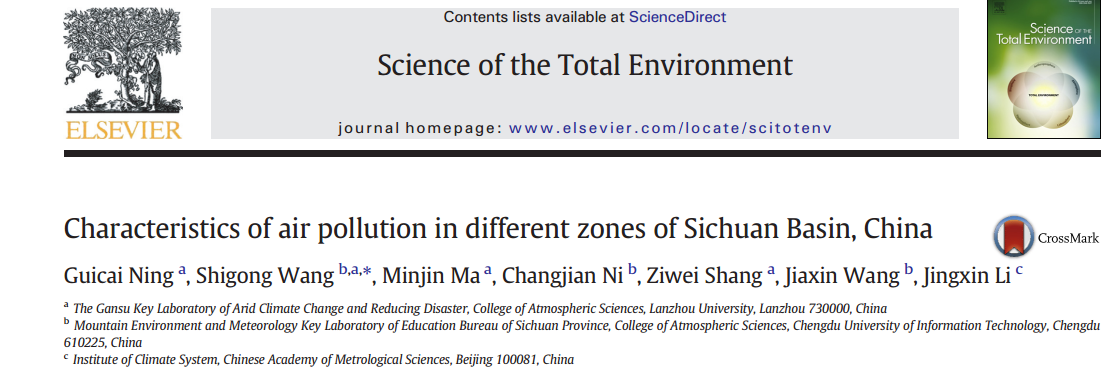 【本网讯】根据Web of Science ESI (2018.12)最新公布的数据显示,大气科学学院王式功教授作为第一通讯作者,指导其博士研究生宁贵财发表在《Science of the Total Environment》(影响因子:4.610,二区)上名为《 C h a racteristics of air pollution in different zones of Sichuan Basin, China》的论文被引次数入选“Environment/Ecology学术领域”全球最优秀的前1%,并被ESI (Essential Science Indicator)高被引论文收录。