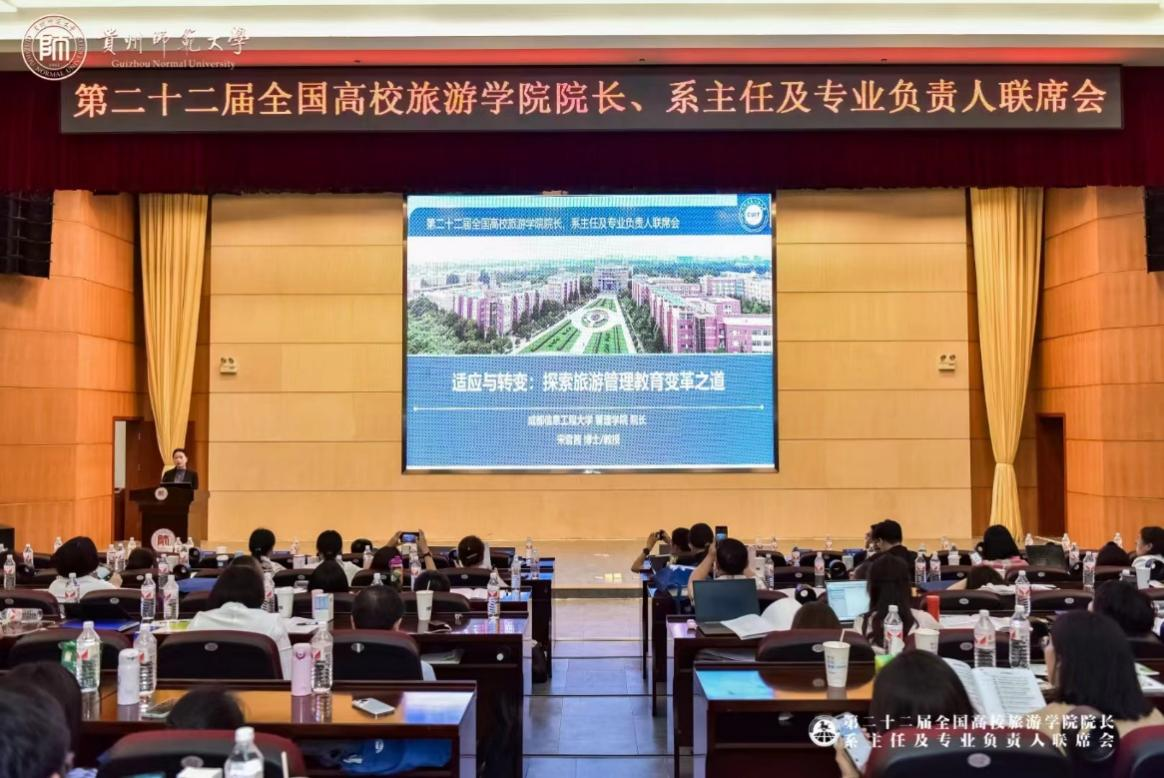 【本网讯】由教育部旅游管理专业国家虚拟教研室、全国高校旅游院校联盟主办的“第二十二届全国高校旅游学院院长、系主任及专业负责人联席会”于5月24日在贵阳召开,130余所国内旅游专业院校近300名代表参会,专家学者围绕“新文科建设与高等旅游教育改革及实践创新、新质生产力与贵州建设世界级旅游目的地”主题展开研讨。我校管理学院院长宋雪茜教授、旅游管理与市场营销系系主任钱永贵、旅游管理与市场营销系教师许娟博士参加此次会议。