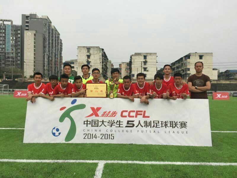 【本网讯】3月28日,经过三天激烈的角逐,2014-2015“特步”中国大学生五人制足球联赛四川赛区的比赛在西南交通大学九里校区落下帷幕。在体育部谢清明主任、樊翔副主任为领队和教练马志杰以及助理教练李炯老师的带领下,我院五人制足球代表队在代表四川高校最高级别的五人制足球比赛中再创历史新高,获得四川赛区的亚军。