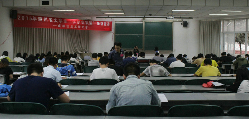 听完讲座之后,同学们积极的参与到“保护臭氧层”知识竞赛当中。同学们结合在讲座上听到的有关保护臭氧层的知识和查找的资料,认真仔细的在试卷上作答。