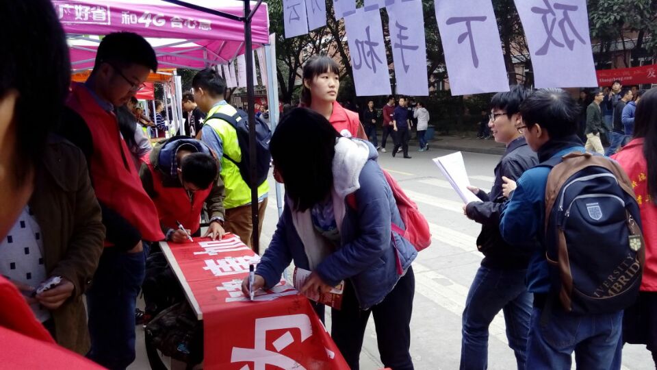 【本网讯】11月9日中午,青年志愿者协会计算机分会在第一食堂门口成功举行了主题为“放下手机,拥抱世界”的活动。