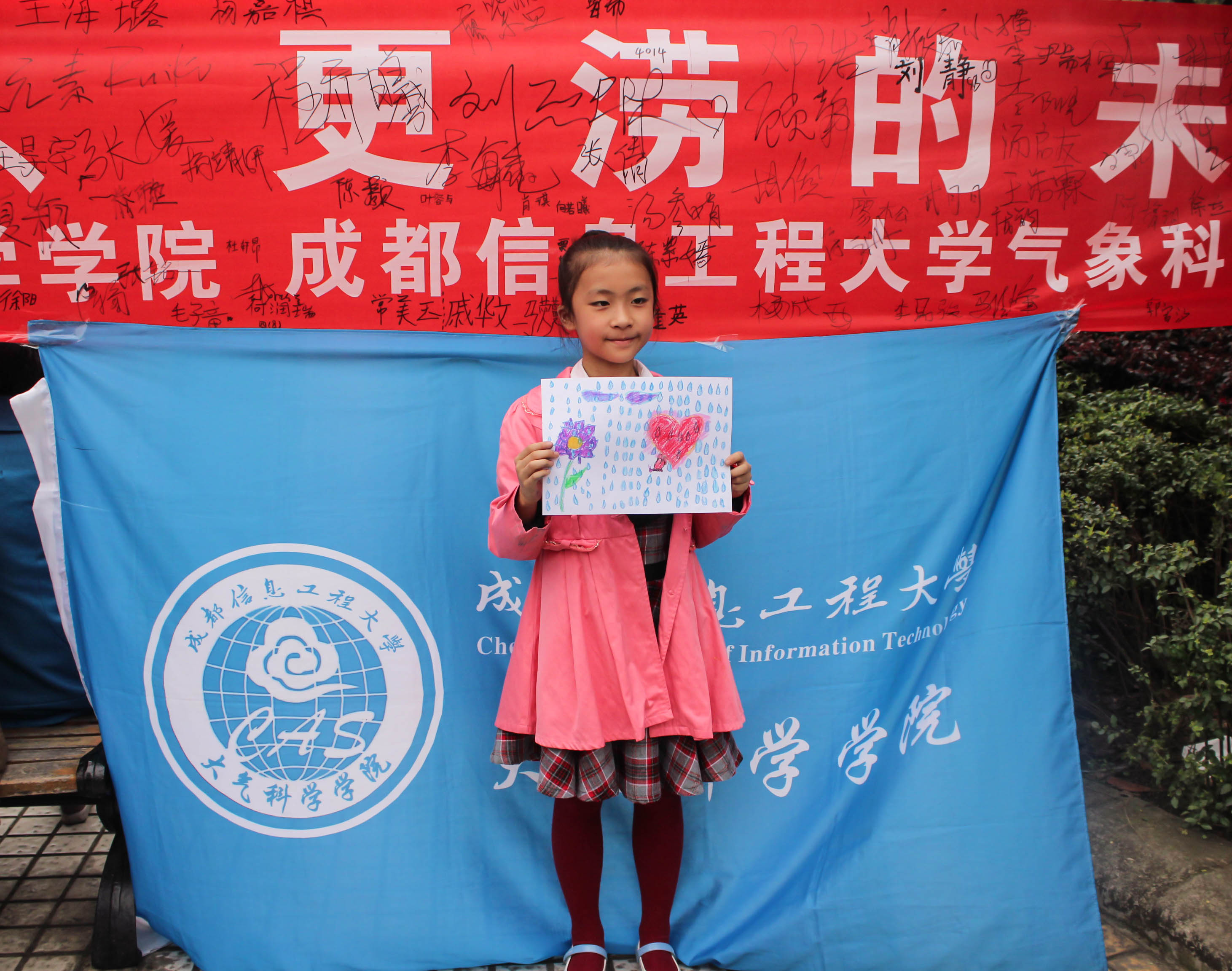 活动最后,为了向市民宣传3.23气象日,同时旨在提高我校气象科普基地的知名度和影响力,在气象广场上进行了横幅签名和拼图画画活动,在场的小朋友们积极参与,完成了一幅幅优秀的气象作品,并在横幅上署名。通过此次气象局之行,相信同学们一定学到了不少的知识,希望同学们能在未来的气象道路上,闯出属于自己的一片天,为应对全球气候的变化做出自己应有的贡献。
