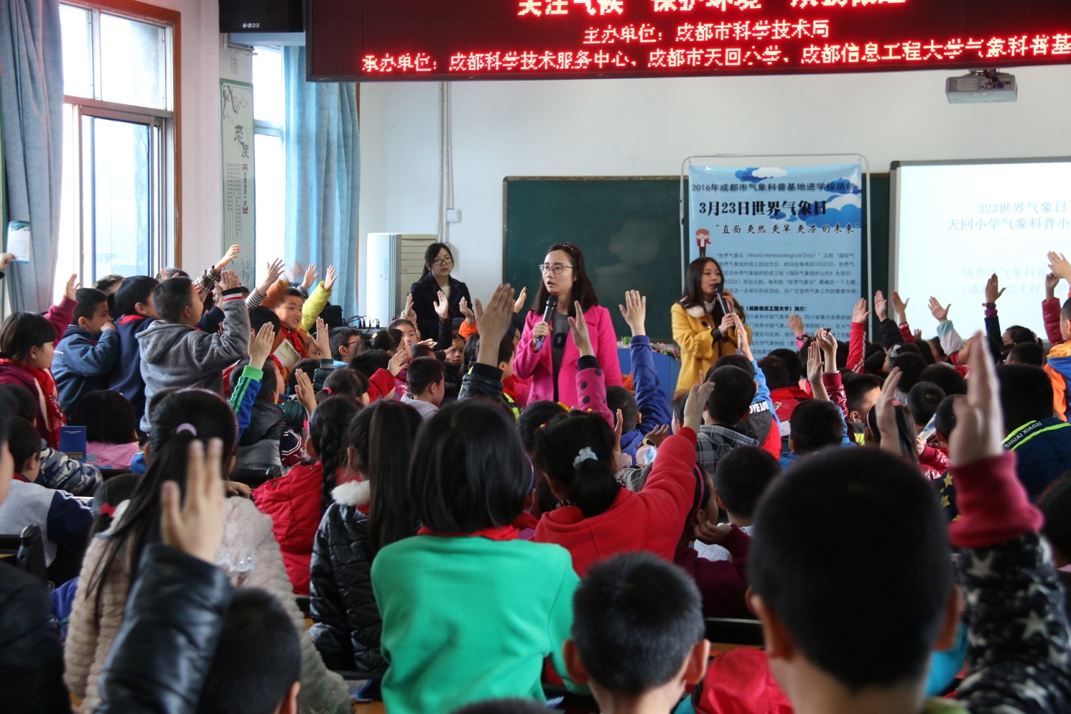 【本网讯】 3月23日上午,由云博体育气象科普基地主办,大气科学学院研究生会承办的“3.23世界气象日——气象科普进校园”活动在成都市天回小学成功举行。天回小学的教师代表和200多位同学参加此次科普小讲堂。
