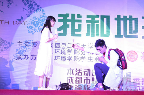 【本网讯】4月22日,由资源环境学院分团委、学生会主办的“只有一个地球”系列活动于第一田径场成功举办。此次晚会以“我和地球有个约会”为主题,由四川蜀九香有限公司、合途旅游冠名,四川蜀九香有限公司总经理吴天梦,资源环境学院分团委、学生会主席团到场祝贺。