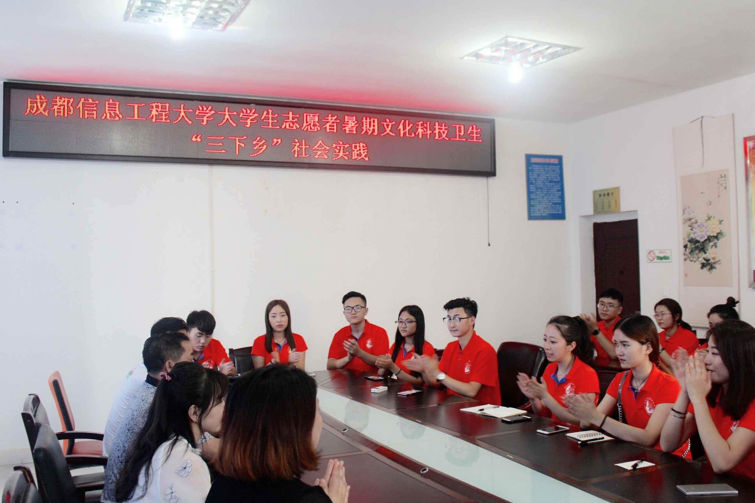 【本网讯】“喜迎十九大,青春建新功”为主题的2017年大学生志愿者暑期“三下乡”社会实践活动在我校正式启动。7月13日上午,社会实践德阳队在旌阳区秦宓社区召开志愿者动员大会。德阳市旌阳区团委副书记胡朝莉,旌阳区秦宓社区党总支书记吴勇,云博体育团委办公室副主任陈敏以及学生志愿者参加了此次大会。