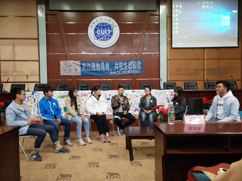从全校数百支社会实践团队中重点遴选出的三支湿地使者团队作为代表,与大家分享在实践中的所感、所思、所获、所悟。“青马工程”精英班社会实践小分队、cuit学生环境保护协会社会实践小分队、学生守望丛林环保协会社会实践小分队分别通过访谈、视频展示及队长自述等方式向在场师生展示我校2017年暑期社会实践服务团队之“2017湿地使者行动”前往阿坝藏族羌族自治州若尔盖县、凉山彝族自治州盐源县泸沽湖、凉山彝族自治州西昌市邛海等开展实践活动的过程,通过社会调研、物种搜集、观鸟护鸟、社区广场宣教、牧民走访等活动,感悟成长,感悟收获,队员们吃苦耐劳、勤于实践的精神深深地感染了现场师生,赢得了师生们的阵阵掌声。与会的同学们纷纷表示,非常喜爱这种分享形式,同时受到许多感染和启发,今后要在社会实践的大课堂中更多去锻炼自己、服务社会。