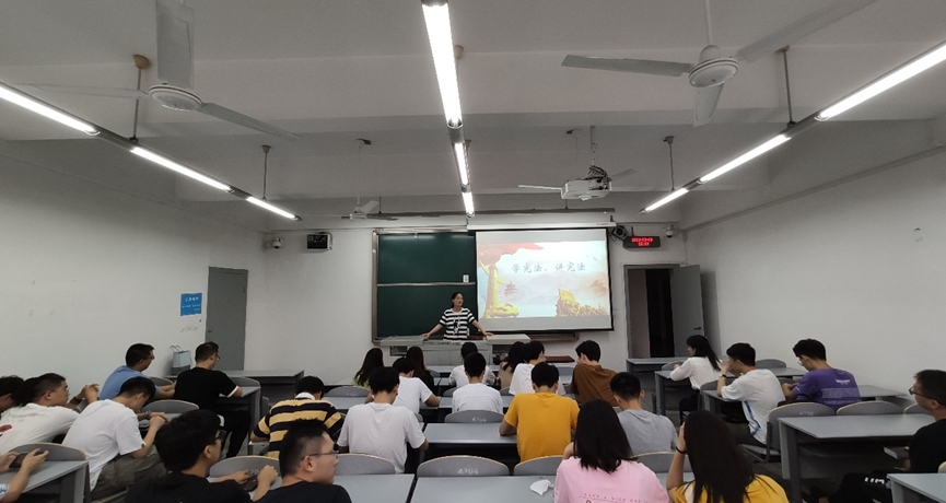 活动以班会形式举行,以“弘扬宪法精神,建设法制中国”为主题。班会上,老师们围绕宪法的意义以及地位,宪法的发展历程、修订历史等方面向同学们进行宣讲,分析了学宪法、讲宪法的重要性,引导大学生自觉成为宪法的忠实崇尚者、遵守者、捍卫者。一些班级还组织学生观看了宪法宣传短片《宪法伴我成长》,通过观看短片,同学们对宪法与公民的紧密联系有了更加深刻的认识,大家表示将在今后的学习、工作和生活中养成遵守宪法的习惯,树立宪法意识,弘扬宪法精神,自觉维护宪法尊严,做一名知法、懂法、守法的大学生。