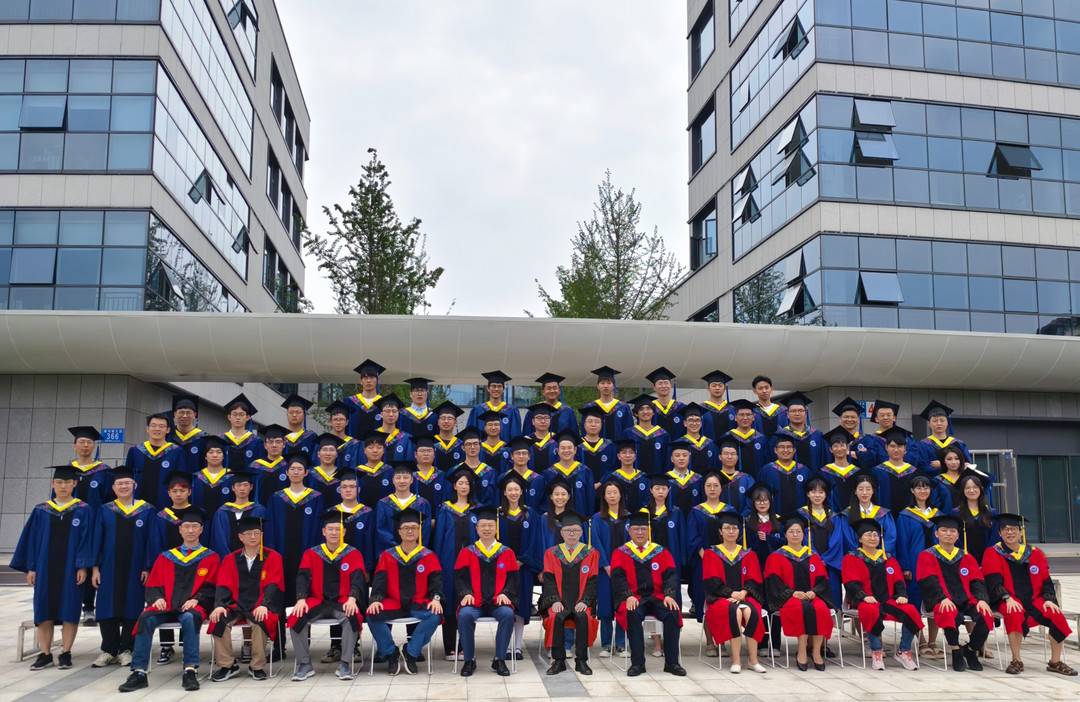 在一张毕业照里,一群教授、导师和学生们穿着学位袍,个个都笑得很明媚。值得关注的是,他们的拍照地点不在传统的大学里,而在一个产业园区。